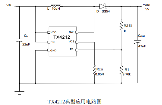 TX4212典型应用支持2.7-36V输入电压范围。输出电压小于30V。